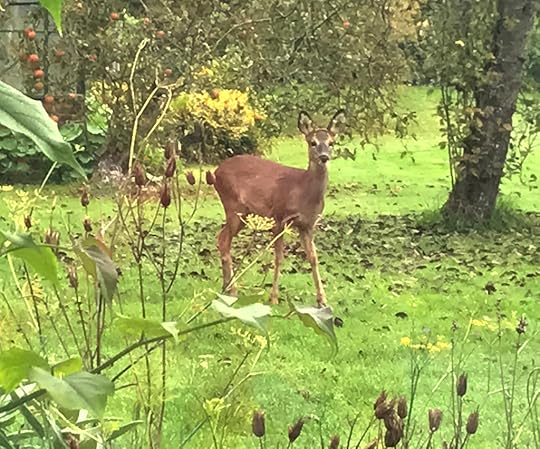I arrived to work to find a duck sitting in the middle of the field the other day and two friendly dogs from next door often pop round for a cuddle and to sit by my feet while I’m working. I feel like the dog whisperer when they are all sitting on me! The house opposite my studio has a pond full of Moorhens and I can usually hear them chatting away to each other in the background. It’s an idyllic place to write.