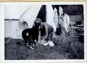 The huge tent took Mum and Dad hours to erect, whilst my brother and I explored and made nuisances of ourselves. For some inexplicable reason, we later all went for a shower, leaving the dog tied to the central pole of the tent. Our return was memorable by the sight of the flattened tent, and Lucy wagging her tail in the wreckage, still attached to the centre pole.
