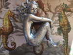Just part of my collection includes this divine Little Mermaid bronze who magically appeared in a local charity shop recently, Mary the Mermaid swam over from Ireland the Christmas before last, (hadn’t even started writing the book then) and the beautiful mermaid doll was caught peering at me from behind a bookcase in a nearby antique centre. She now plays a big part in the new novel, and why not, just fabulous, isn’t she? (Lovely. Mx)