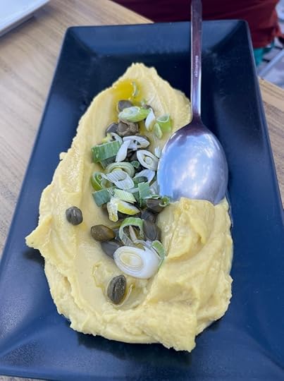 Leaving vines to one side, the typical crops are pistachios, fava beans, tomatoes and capers. The fava beans are more akin to yellow split peas than the more broad bean like legumes we find in the UK under that name. They are used to make delicious thick purees, often served with grilled octopus, or simply sprinkled with capers and spring onions.