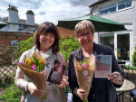 I then went on to my regular monthly meeting with other writers at Bevere, Worcester. It was a super meeting as usual and my friend, Janice Preston had a book out on the same day too Lady Cecily and the Mysterious Mr Gray. We had photographs together and even did a short Facebook Live video ably filmed by Alison May – see video here. Elizabeth Hanbury gave us both lovely bunches of tulips and I received a fantastic card from Lynn Forth in celebration.