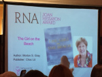 As each person was called forward, their face and novel cover appeared on the huge screen and Nicola Cornick, the newly appointed RNA Chairwoman read out the judges’ summary of the novel. When I stepped forward, I was aware that nice things were being said about The Girl on the Beach, but I couldn’t remember them moments later. There was applause and a cheer for me, which was lovely. Alison May, newly appointed Vice-Chair, gave me my certificate for graduating from the New Writer’s Scheme.