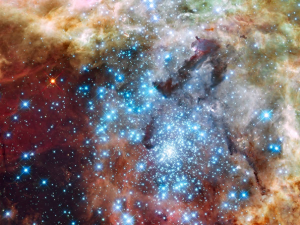 Figure 3. “Two star clusters are becoming one in30 Doradus, 170,000 lightyears away in the Large Magellanic Cloud.”