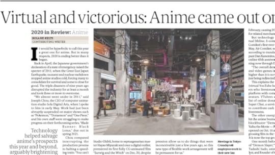 "Covid-19 caused a spike in demand for online anime content that even the rosiest industry forecasts didn’t predict. The shuttering of live-action sets, combined with a stuck-at-home audience desperate for fantasy escapes, has meant that animation, with its low budget, safe-to-make product and unmasked characters, is now the go-to alternative for both producers and viewers."