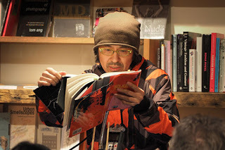 Can literature sometimes transcend words? One night in Brooklyn at the old BookCourt bookstore, where we were launching a new issue of MBI, I stood next to my dear friend Gabriel Brownstein, an award-winning short story writer and novelist. Hideo Furukawa was reading in Japanese his story, “Monsters,” about an apocalyptic, post-Godzilla Tokyo, his voice brittle and rangy, his body curling into a ball that popped wide open, arms flailing, with punk rock jerks and Pete Townshend windmills.