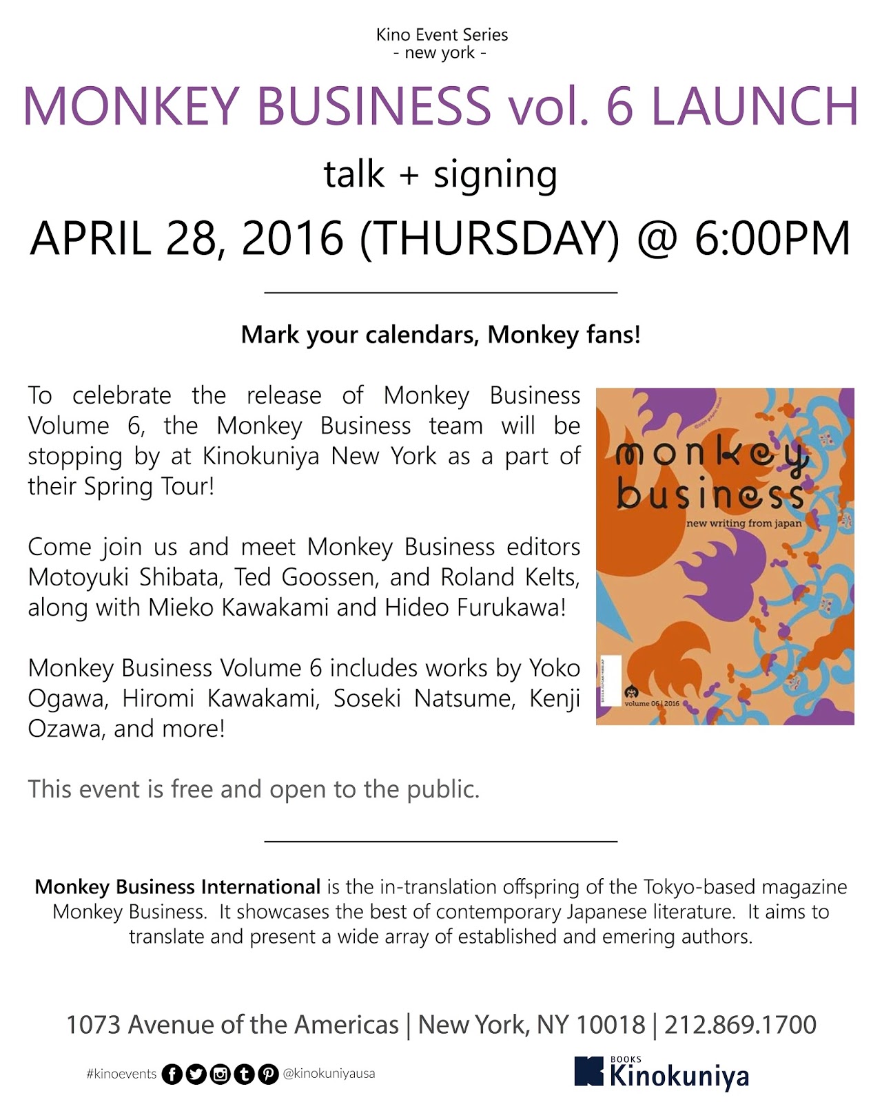 April 27 Wed, 6:30pm: New York University (7 East 12th Street, Room 321, New York, NY)April 28 Thur, 6pm: Kinokuniya Bookstore (1073 Ave of the Americas, New York, NY) *Brown and Dinh will not appear at this eventApril 29 Fri, 7pm: BookCourt (163 Court Street bet. Pacific & Dean Sts., Brooklyn, NY)