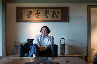 On a bright hot summer afternoon, we are standing in the front room of his house, cool and shaded, surveying its panoramic views of Kamakura’s scalloped rooftops sloping down to the sea.
