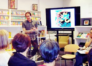 Photographer and friend Stuart Freeman found that Astro Boy/Tetsuwan Atomu was keeping a close eye on me as I talked about his creator, Osamu Tezuka, last night at The Japan Society in New York City. I was and remain humbled by their presence.