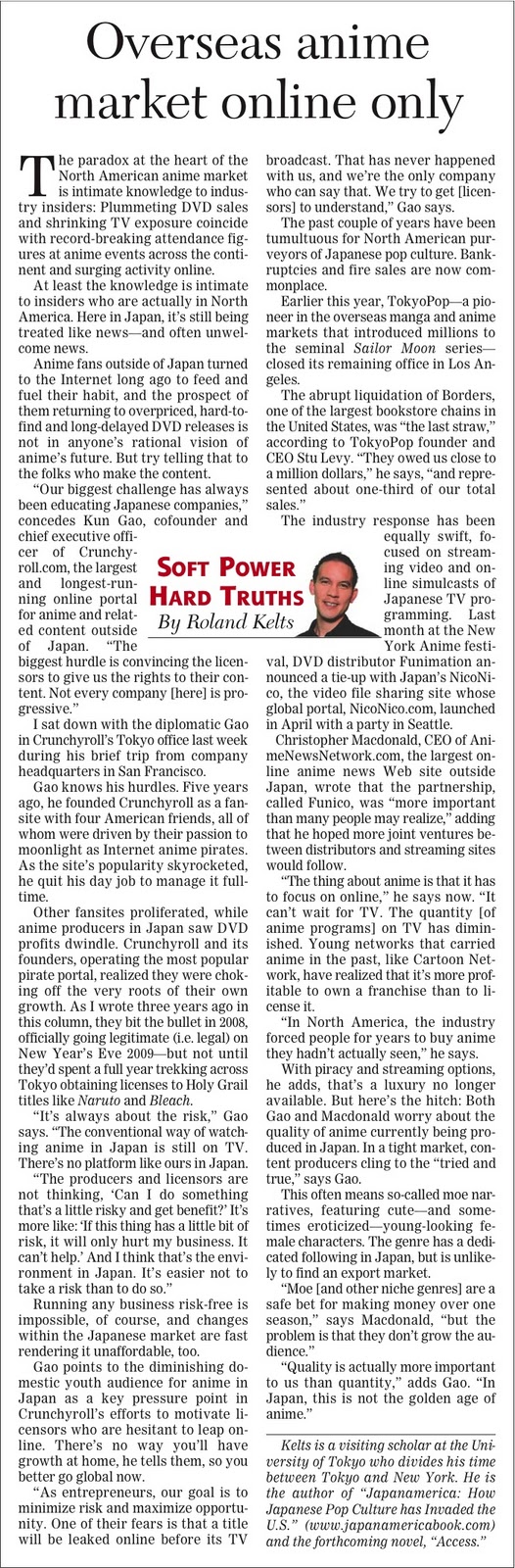 The Asahi Shimbun reports on the latest attempt to forge into foreign markets here -- and translator, author and writer Dan Kanemitsu critiques it here.