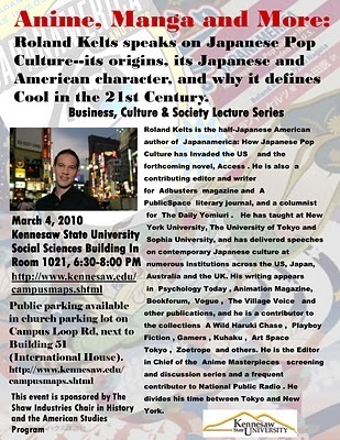 These are heady and head-aching times in Japan--economy tanking, government paralyzed, and otaku culture in the microscope as bills to censor manga and anime await approval. The arrest last month of Chris Handley in the US for 'obscene manga' possession have inspired fits of anxiety here in Tokyo. Otherwise reclusive manga artists staged a protest press conference on Monday, and the bill gets voted on in a low-level committee here in Tokyo on Friday.Thursday night, I speak on these issues...