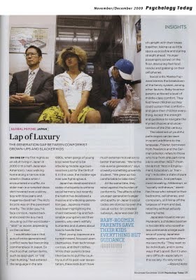 I wrote this story about Japan's unique generation gap for Psychology Today. Things keep changing, but the fundamentals remain the same. Japanese youth are enacting a kind of Bartelby Rebeillion--checking out, passively, to check in.