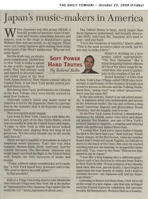 Latest column for the Yomiuri-on Miho and J-Pop in the USA
