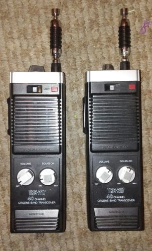 Channel 19. The highway channel. The trucker channel. If you own a CB, you keep it on 19 until you turn it off or switch channels to chat with someone. FCC rules exist, but no one seems to care on the citizens band. You can get away with practically anything, from cursing to gambling to running illegal amplifiers with thousands of watts of power in order to 'skip' your signal halfway across the globe when propagation allows. I remember the first time I talked to a guy in Jackson, Mississippi who called himself "Moondog." Oh yes, I forgot to mention, everyone on CB identifies with a 'handle'. When I was younger, mine was "Black Dragon," a nickname I picked up due to my love for all things ninja. Later on, I became "Nightcrawler," for no real reason.My first set of CB walkie-talkies, also purchased from Radio Shack, were hand-held bricks with six-foot-long center-loaded telescoping antennas. See below: