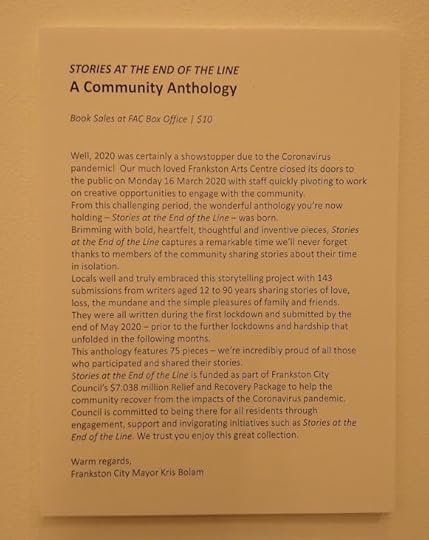 The Stories at the End of the Line anthology came into being last year as a community engagement project when the Frankston Arts centre closed its doors due to covid on 16 March 2020. The brief for the project was to write a 500-word story about the experience of being in lockdown – fiction, fact, wherever your inspiration took you. In lockdown, the community shared its imaginings and experiences.