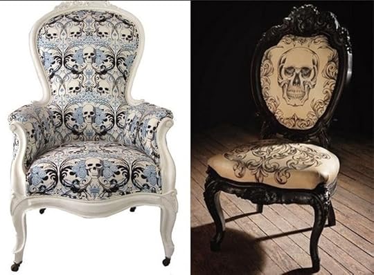 You can also re-cover an old Rococo-style chair with a funky skull damask fabric like those you can find at Spoonflower.com.