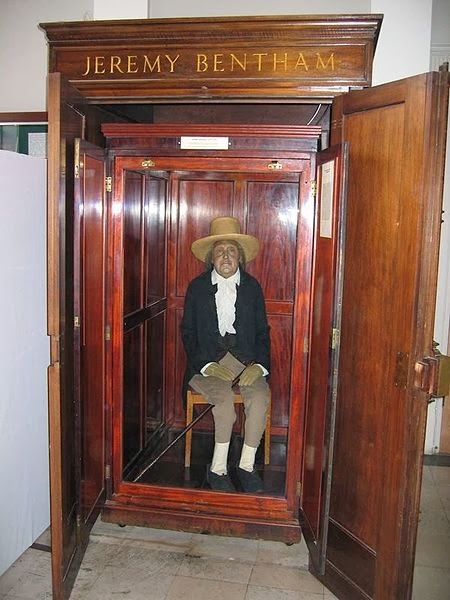 Bentham, fascinated with mummification, decreed in his will that his body should be preserved in such a fashion (an "auto-icon" as he termed it) and put on display at the school, obviously to the satisfaction of an undoubtedly powerful ego.