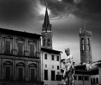 Palazzo Vecchio, a photo by freshEIRE on Flickr.At the heart of Florence sits the imposing facade of Palazzo Vecchio, a one-time fortified palace for medieval big wigs in Tuscany. Built in 1299 as the seat of power for one of many warring city-states in what we now call Italy, the palazzo is haunted by Baldaccio d'Anghiari, a 15th century rival to Cosimo de Medici. In their bloody rivalry, Baldaccio was murdered by a Medici loyalist. Now his vengeful spirit wander the dark corridors of the palace from which he once ruled.