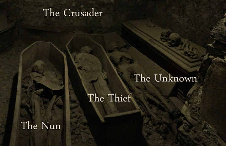 A church has, in various incarnations, existed at the site of St. Michan's in Dublin since 1095 when it served the Viking community. Its current form dates to 1686. While possessing a modest, almost negligible façade (in fact, many visitors pass it up to see the more popular St. Patrick's and Christ Church cathedrals), it is the ancient Viking undercroft that makes St. Michan's a Dublin must-see. These vaults, used as crypts for centuries, are not a big budget tourist attraction with fancy light shows and paved floors. It's quite nearly something straight out of a horror movie: Sickly bulbs make desperate attempts to reach into the darkness of the centuries to illuminate rough hewn limestone masonry, fringed in cobwebs, that slowly crumbles with the weight of age. A mantle of dust clings thickly over every surface, kicked up from the bare earthen floor or a long narrow passageway. All along this hall, on either side, the openings to small low crypts can be found. Some are gated with ancient wrought iron, others were bricked up, but almost all of them have over time crumbled open to reveal the many coffins stacked inside like cordwood. More than a few of these have rotted apart to reveal the desiccated husks of what makes these vaults so famous. The mummies of St. Michan's. The cave-like conditions of the limestone crypt have created an ideal situation for the preservation of the dead. In these vaults, you'll find some interesting characters. While some residents--like the Earls of Leitrim or the Sheares brothers, famous for their role in the 1798 rebellion--have well known stories, others are complete enigmas. There is a woman dubbed The Nun, a 6.5' fellow believed to be a crusader who was so tall he had to forced to fit into the tiny coffin, another gentleman missing some appendages thought to be a thief, and many more who are simply unknown. And the crypts go back even further than one can walk. The corridor becomes bisected by debris halfway down and many more mysteries likely linger beyond in the dark and the death. Myriad ancient gravestones litter the churchyard above, seemingly laid out haphazardly and listing with age. Among these can be found the grave of Bram Stoker's mother. Many believe that the Irish-born author of Dracula was inspired by the church and its haunting crypt when writing that famous novel of Gothic horror. The church is also home to the death mask of famous Irish revolutionary, Theobald Wolfe Tone. It was also at St. Michan's that Handel practiced his most famous work, "Messiah." One woman and her mother visited in the Summer of 2010 and heard a whispering coming from the unexcavated end of the crypts. She wasn't the first to report these phantom murmurs. Others have experienced this as well as the touch of unseen hands.