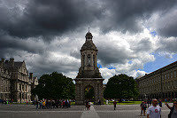 Bell Tower in Front SquareTrinity College has a storied tradition of excellence and houses several national treasures. In 1999, during construction of an addition to the Berkely Library at Trinity College, a mass grave of dismembered (mostly*) human remains were found dating to the 18th century. It is believed these were the remnants of cadavers dissected by medical students. Until the 1830 Anatomy Act, it was problematic to procure cadavers for study. There were men, however, known as "Sack-em-ups" who could find you bodies for a fee. Darkly, many of these cadavers came from men, women, and children who were murdered for the sole purpose of selling their bodies. It is also claimed that Dr. Samuel Crossey, head of the Medical School, was known for personally obtaining such specimens. It is claimed that two students disappeared under mysterious circumstances during his nocturnal hunts for specimens. Reports of Dr. Crossey's ghost being spotted walking the campus late at night surface from time to time. Ghosts also haunt the University's Long Room library (home to two national treasures: The Brian Boru harp and the Book of Kells), the Rubrics building, and the New Sports Hall, according to campus gossip. One notable tale is that of Edward Ford whose ghost stalks The Rubrics building. It is said that after a group of pranking students threw rocks at his window late on the night of March 7, 1734, he grabbed his gun and fired at the assembly. No one was hurt, but the angered students gathered guns themselves and later returned for revenge. Ford was killed in the hail of gunfire. His final words were in response to the question of who shot him: "I do not know, but God forgive them. I do." Even today, reports surface of those who have witnessed a man in 18th century attire wandering about the Rubrics at night. It's said that any student hapless enough to wander beneath the iconic bell tower in Trinity College's Front Square as it chimes will fail his or her exams. At a side entrance to the College, the Nassau Street sign has an Irish translation of “Sráid Thobar Phádraig," or Street of St. Patrick's Well. According to the tales, just beneath the left hand pillar of this entrance is where St. Patrick first baptized his early converts.