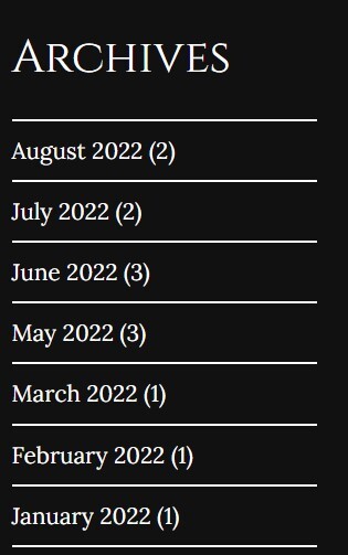 How can you know what I’ve written in the past or where to even look? This ARCHIVES section gives you only the amount of blog posts I’ve written in that particular month.