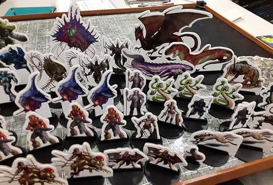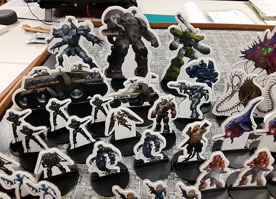 These aren’t *all* the pawns that come in the box, but they are (IMHO) those that work best as Large or bigger figures. They are bright, crisp, and bring a great visual for big monsters, alien creatures, emcha, vehicles, and one cool hoverjet.