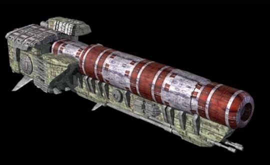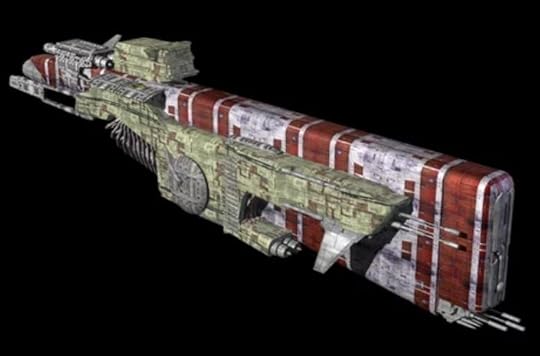 Although absolutely not designed for warfare, a bulk carrier can be retrofitted with internal armor bulkheads, massive banks of secondary screens, nearly as many missiles as a missilenaught, lots of defensive weapons, and a few Secondaries. This makes them “eggs with canons,” able to punch in the weight class of a battle cruiser (albeit wth less range), but more fragile than even a light cruiser. However, such ships (called “Q-Ships”) are sometimes used to hunt pirates, as they can retain their nonmilitary freighter appearance.