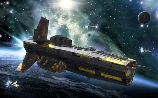 Fleet carriers are the largest warship to regularly see operations outside of wartime, and are on-par with battleships in terms of total tonnage. Rather than spinal mount spinal weapons or Primaries, fleet carriers give up their vast tonnage to carrying squadrons of smaller craft, focusing on non-FTL capable vessels the carrier takes from system to system, though any well-designer carrier also has a number of long-range scout ships, minelayers, recovery and repair craft, missile tenders, and troop transports. Carriers mount some Secondaries, and as many defensive batteries as they can cram onto the surface, but beyond the firepower of their squadrons, most of the punch of a carrier comes from missile batteries backed by their enormous and extremely advanced tracking and targeting sensors and computers.