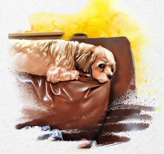 Rufus after a hard days work. He stands guard at the window ready to spring into action with loud alarms when the house is threatened. “Keep these humans safe,” he tells himself. Spin in circles, run to the back door, alert my family. All is secure, he can rest.
