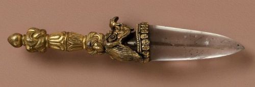 Ritual Dagger, 17th century or earlier, Eastern Tibet, Kham region. Gilt copper alloy and rock crystal.