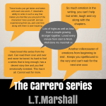 To celebrate the success of The Carrero Series to date, L.T. Marshall is giving away the first 4 ebooks in the series to one lucky winner.
