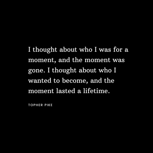 “I thought about who I was for a moment, and the moment was gone. I thought about who I wanted to become, and the moment lasted a lifetime.” - Topher Pike