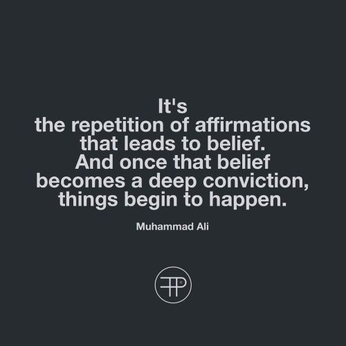 It’s the repetition of affirmations that leads to belief. And once that belief becomes a deep conviction, things begin to happen. - Muhammad Ali