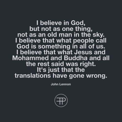 I believe in God, but not as one thing, not as an old man in the sky. I believe that what people call God is something in all of us. I believe that what Jesus and Mohammed and Buddha and all the rest said was right. It’s just that the translations have gone wrong. - John Lennon
