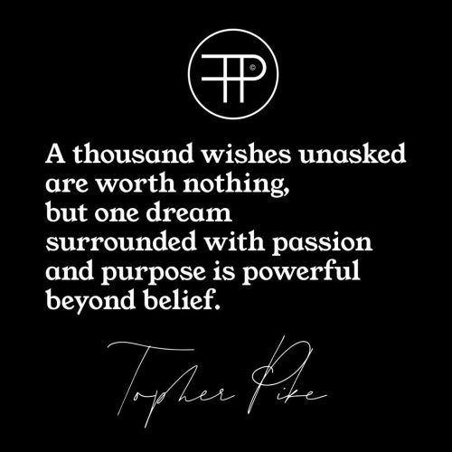 “A thousand wishes unasked are worth nothing, but one dream surrounded with passion and purpose is powerful beyond belief.” - Topher Pike