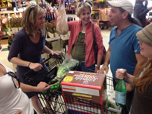 I discovered Von's, which is apparently a chain grocery story in California. "V-a-u-g-h-n-s," said David, when I asked him how to spell it. I believed him and started writing it down until I heard the others sniggering. Kidlit illustrators can be so MEEEEEAN. :-D
