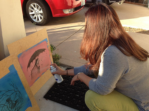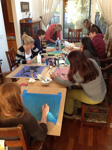 Some of us (hand waving here) didn't normally work with acrylics, so were a bit nervous about the process. BUT it ended up being a lot of fun as well as enlightening -- it was good to push beyond our normal creative comfort zones, especially in a safe and encouraging environment like the one at Lost Weekend.