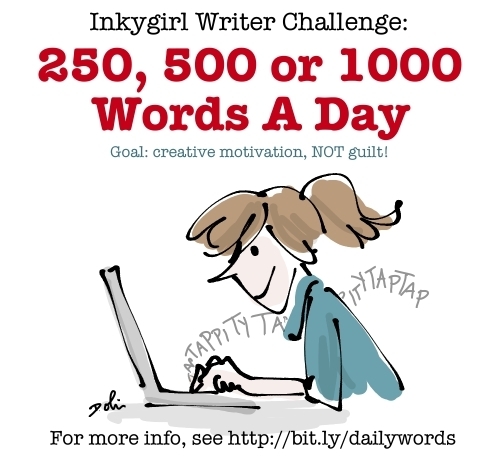 I'm tickled by the enthusiastic response to my 250, 500 and 1000 Words/Day Challenge for Writers! I've been getting a ton of "I'm in!" messages on Twitter, Facebook and here on Inkygirl. For those on Facebook, I've created a page specifically about the challenge: