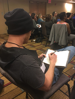 Fred: There’s also a HUGE difference between writing and illustrating. When I’m writing, I have to be alone or at least wearing my “do not disturb” face–ball cap pulled low over my face, headphones in. When I’m illustrating, I don’t mind being around people. I feel like I suck in the chaotic energy from a crowd and channel it into the artwork.
