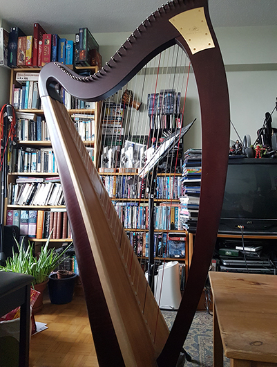 I started learning the harp about three years ago, and it's a great instrument to play when you are drowning in stress. Granted, harp fingering and technique can cause stress too, but it's a different kind of stress. Just being in the same space as a harp makes me happy. Also, when I lose my temper and shout at the computer screen, the harp strings resonate, and the harp underlines the screaming with ghostly, whispery music.