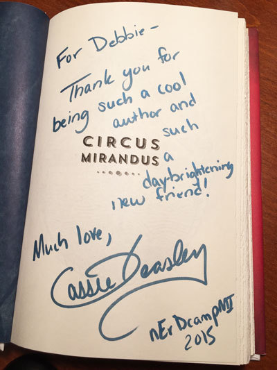 I was also lucky enough to meet Cassie at Nerd Camp in June. She's so easygoing and friendly, plus drew me a picture of an elephant butt! She says it's the only thing she knows how to draw. grin emoticon I keep her drawing in the front of my copy of her book.