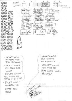 Click for bigger image. ©2013 Patricia Storms.When I felt better, I worked on creating a tight storyboard on large newsprint, and then I scanned the storyboard sketches and using Photoshop, I put the text in where I thought it would flow best. And then I promptly...let it sit on my desktop for a year.