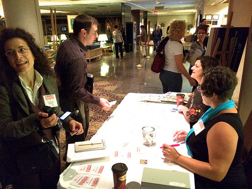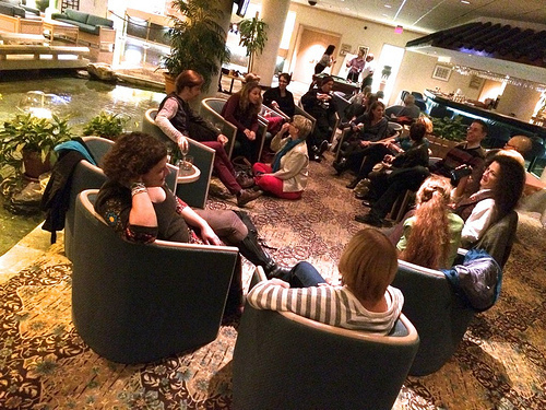 Hanging out by the koi pond on Saturday night. This casual gathering (open to all attendees) included Laurent Linn (Simon & Schuster), Linda Pratt (Wernick & Pratt), Bonnie Bader (Penguin) and Jill Santopolo (Penguin).