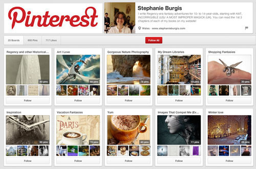 (Since then, of course, Pinterest has been invented - woooot! I am addicted! - and my Pinterest inspiration boards there have replaced the paper-and cardboard collages I used to make. Nowadays, whenever I'm working on my new WIP, I have its Pinterest inspiration board open as my desktop wallpaper. But while I was writing the Kat books, my visual collaging process was still all about cardboard, magazines, and glue.)