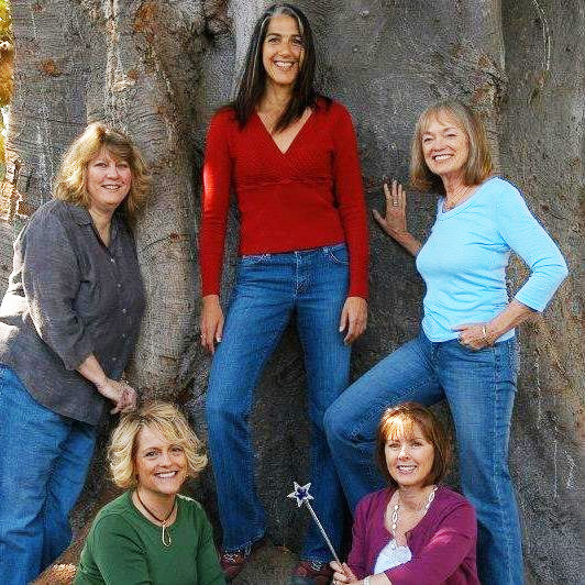 [Note from Debbie: The fAiRy gOdSiStErS are right -- this conference can definitely be a career-changer. It was for me. Lee Wardlaw (bottom left in the photo) was the one who first told me about the SCBWI, and I'll always be grateful. Lee was also my very first writing mentor, and introduced me to her agent...Ginger is now my agent as well. :-) THANK YOU, LEE!!]