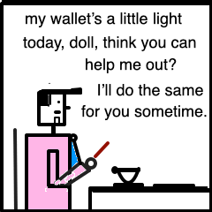 “Why not use the extra to pay for more books? Also, why not treat yourself to a nice breakfast here at Ma’s?”