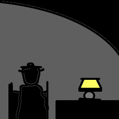 Gerry “the Brain” Goldsmith came suddenly awake and realized he must have left his desk lamp burning. He turned his head to his right and saw the little man sitting at the writing table.