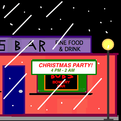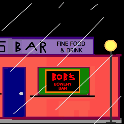 Right now he was talking to a guy here in Bob’s Bowery Bar. He knew he was in Bob’s because there was good old Bob over there behind the bar himself, and he hadn’t even thrown Philip out yet. Good man, Bob!