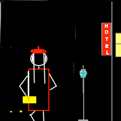 Just then the door opened and an enormous black man stood there, dressed in a railroad man's overalls and cap. Behind him swelled and roared music and shouting and laughter.