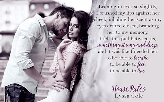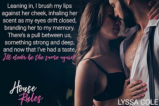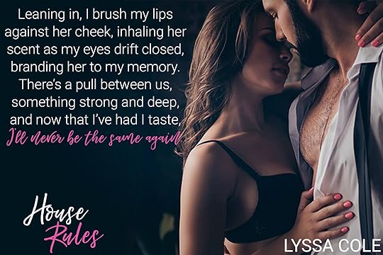 House Rules- A Brand NEW standalone romance #lyssacolebooks #comingsoon Cover Reveal Coming 10/24!! Add to GoodreadsWant to be notified by email when House Rules releases? Click here!Rules are meant to broken, not hearts. Emma Rules. Follow the House Rules, Emma. Growing up, that’s all my mother would say. In order to find love and happiness, follow the rules... I believed those rules. I followed them, lived by them, loved by them. But at the end of the day, I'm still not happy. Alone. Always trying to help everyone else find their happiness as I fall further down into a deep, dark hole. Until, the day Knox broke those rules and set me free. Knox Love is pure... love is happiness... love is life. That’s what I was told. But I’ve learned the hard way. Love will break your heart. It'll leave you cold and hurt. Scrambling and lost. Shattered. I’ll never allow myself to fall again. Until Emma. Emma...in my life without warning. Her entire being calls to me, filling me with hope. I’m lost without her. My mind screams at me to run and never look back. But I can’t. A relentless, unyielding force keeps me in place. I spend my life helping others. Isn't it time I help myself? **Steamy, explicit sex. 18+ recommended.
