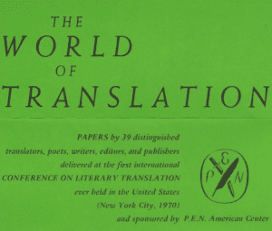 Translationista is coming out of semi-retirement just long enough to announce the launch of Translating the Future: A Conference and Conversation Series celebrating the 50th anniversary of the historic World of Translation conference put on by PEN America (then the P.E.N. American Center).